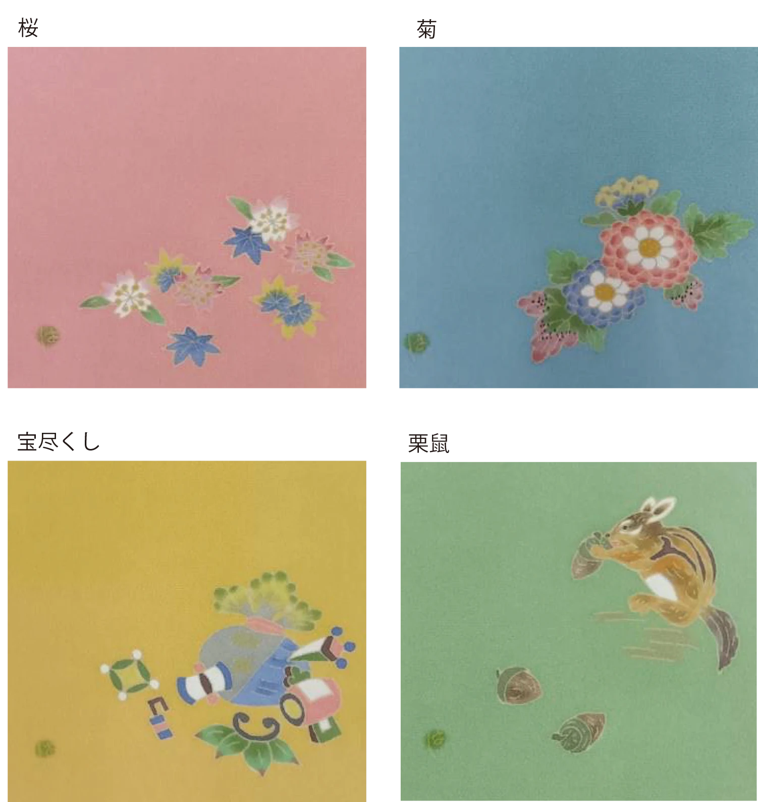 絵柄は桜・菊・宝尽くし・栗鼠の中から選べます。