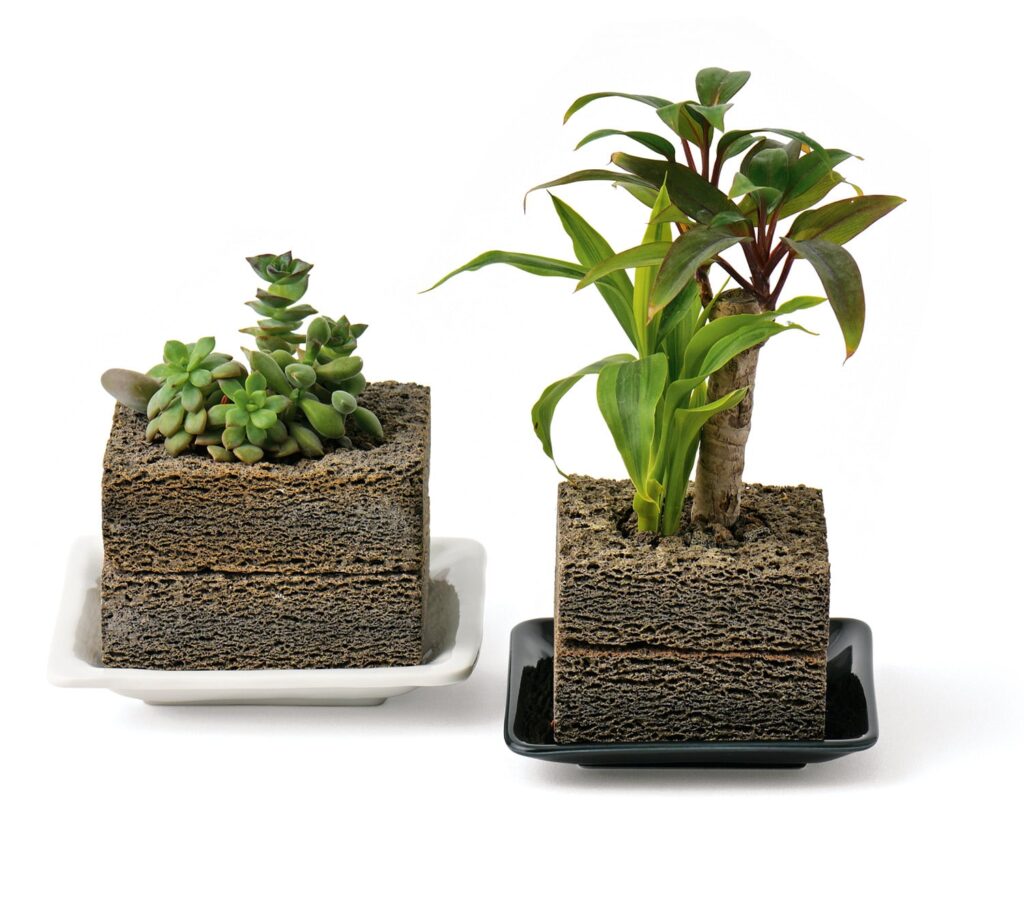 会場には、廃粘土を再利用した九谷焼の箸置きやブローチ、珪藻土を用いたフレグランスアクセサリー、セメント製のカトラリーレストなど、環境への配慮と遊び心をあわせ持つアイテムが並びます。